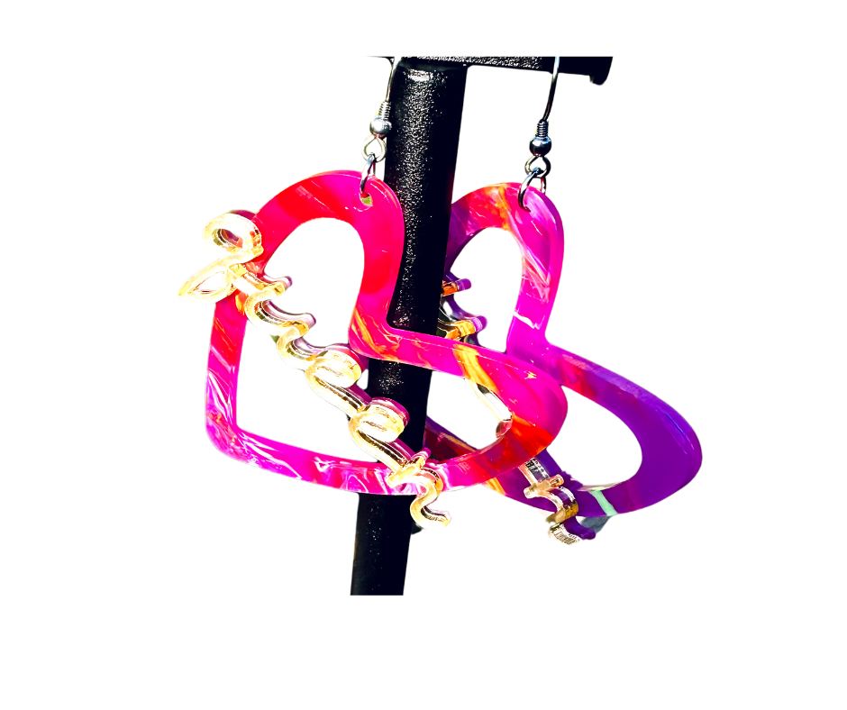Our colorful resin drop dangle Heart-shaped earrings are perfect for any occasion.